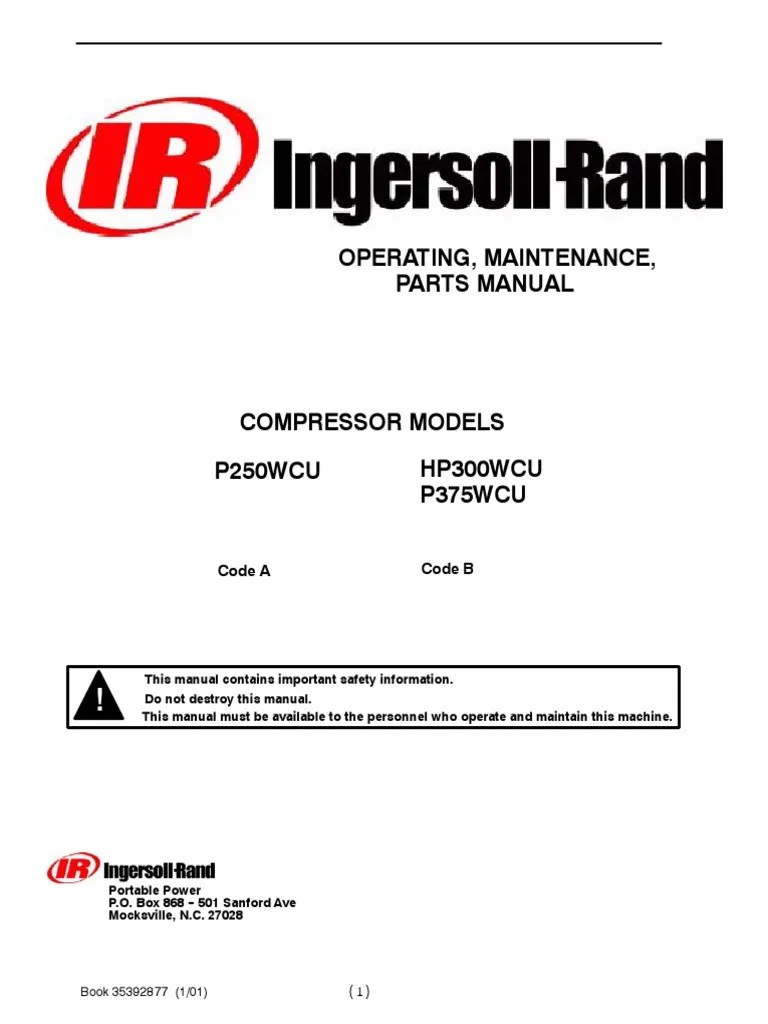 Ingersoll Rand Parts Manuals / Ingersoll Rand Compressor P250wd Operators Maintenance Manual With Parts List -. Top stories before the start of u.s. Tuesday, pushing the stock up almost 6% after the company. A second day of dismay loomed as former fed chief greenspan warned of rising prices and a cooling economy and moody's said the ratings of four leading bond insurers may be lowered. Rand mcnally is a familiar name in the map world with history dating back to 1856. If you need to make a repair or replace a part that's worn out, you can find replacement parts for your ingersoll rand products.